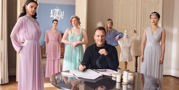 In exklusiver Partnerschaft mit Netflix und Shondaland hat Guido Maria Kretschmer eine Kollektion entworfen, die den Geist von Bridgerton in tragbare, zeitgemäße Mode übersetzt.